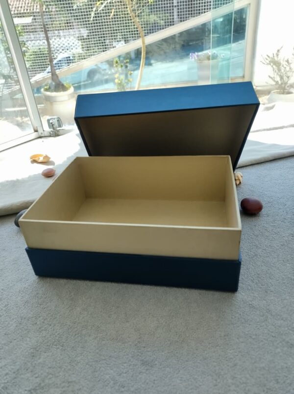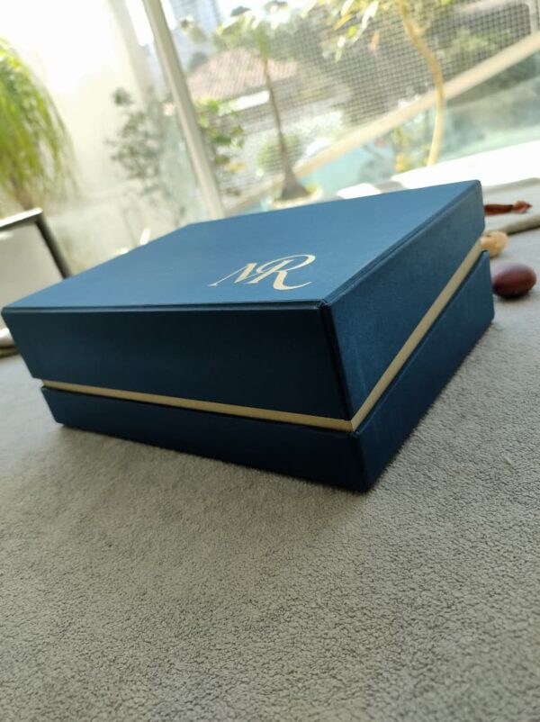 Caixa com duas bases acopladas em cores diferentes, além de dar mais sustentação, deixa a aparente um filete demonstrando sofisticação e elegância.