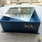 Modelo rígida com tampa em acrílico cristal com espessura de 2mm e puxador em acrílico