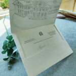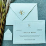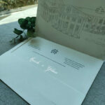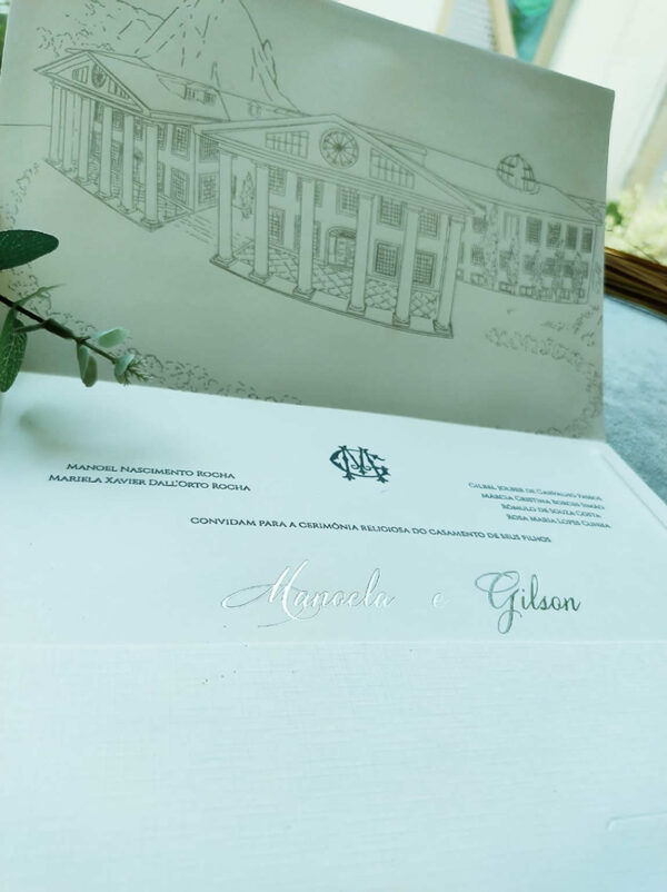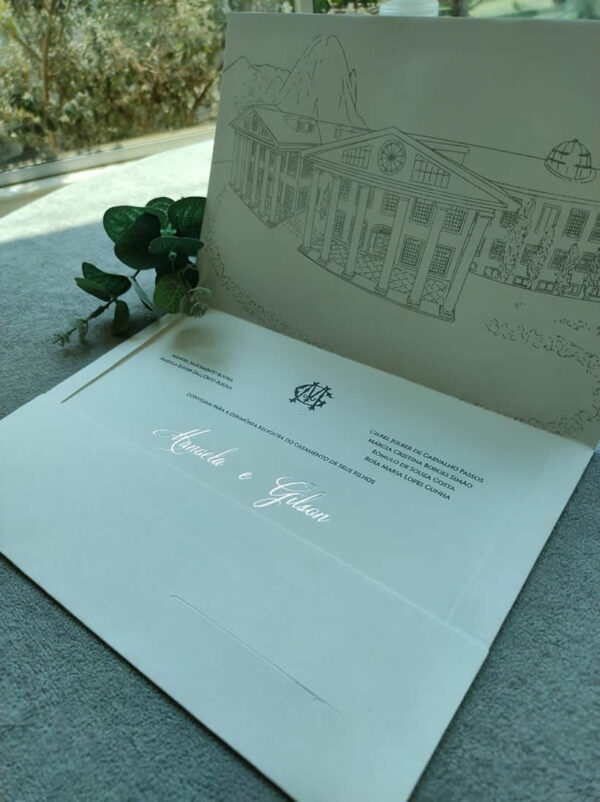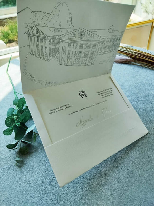 Convite de casamento com ilustração em serigrafia